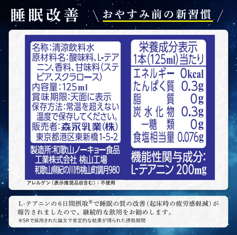 睡眠の質を改善(起床時の疲労感を軽減)する睡眠サポートドリンク