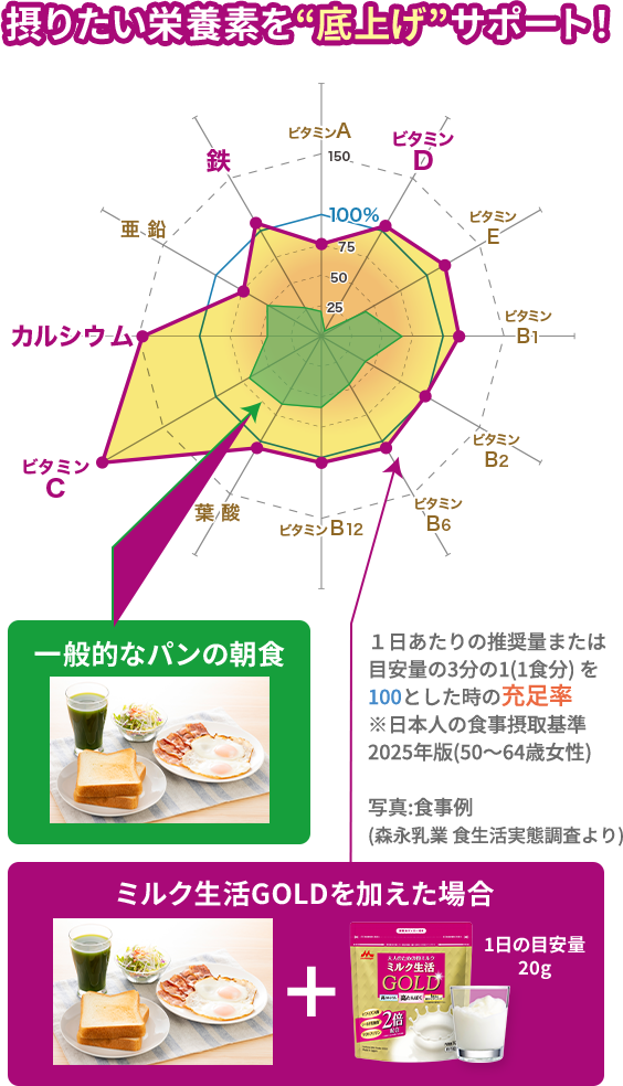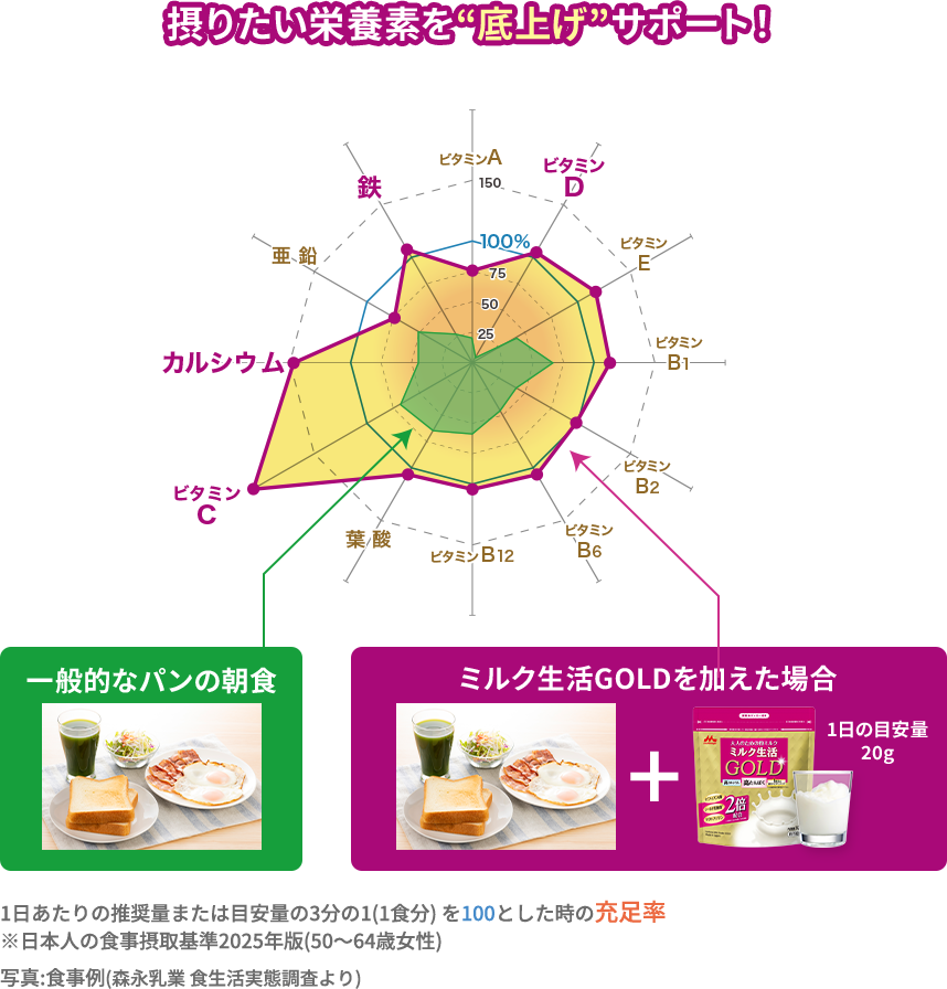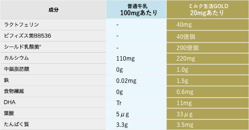 ※1 ミルク生活GOLD 製品20gあたりラクトフェリン40㎎配合
